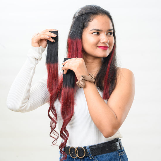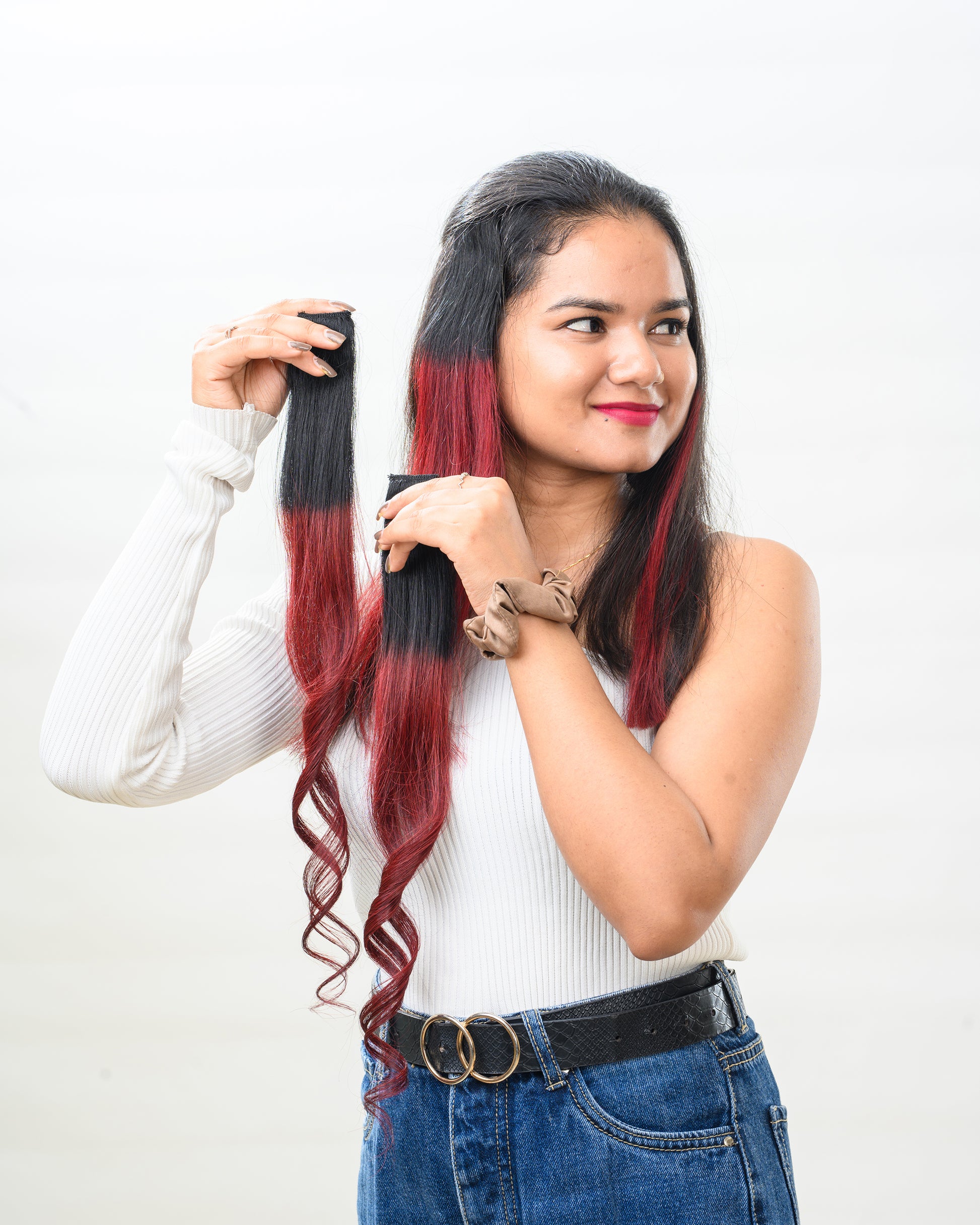One of the things I really appreciated about this extension is how easy it was to apply. It comes with a small clip that you can use to attach it to your hair, and it stays securely in place throughout the day without feeling heavy or uncomfortable.Overall, I would highly recommend this wine-colored hair extension streak to anyone looking to add a pop of color to their hairstyle. It's a high-quality product that is easy to use, looks great, and holds up well over time.